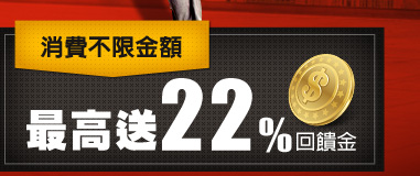 消費不限金額 最高送22%回饋金