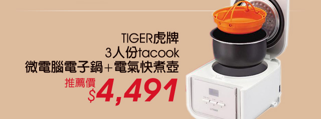 TIGER 虎牌微電腦電子鍋+1.0L快煮壺