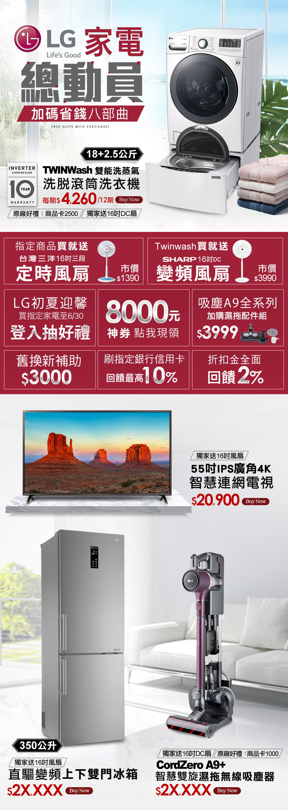 買就送16吋DC扇LG樂金TWINWash雙能洗蒸洗脫烘16公斤+2.5公斤WD-S16VBD+WT-D250HW