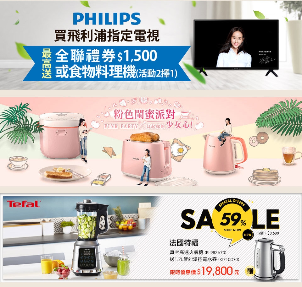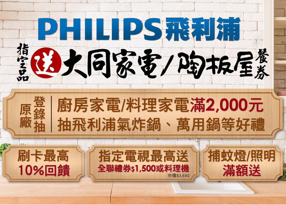 飛利浦指定商品送陶板屋餐券、單筆滿1萬送大同快煮壺