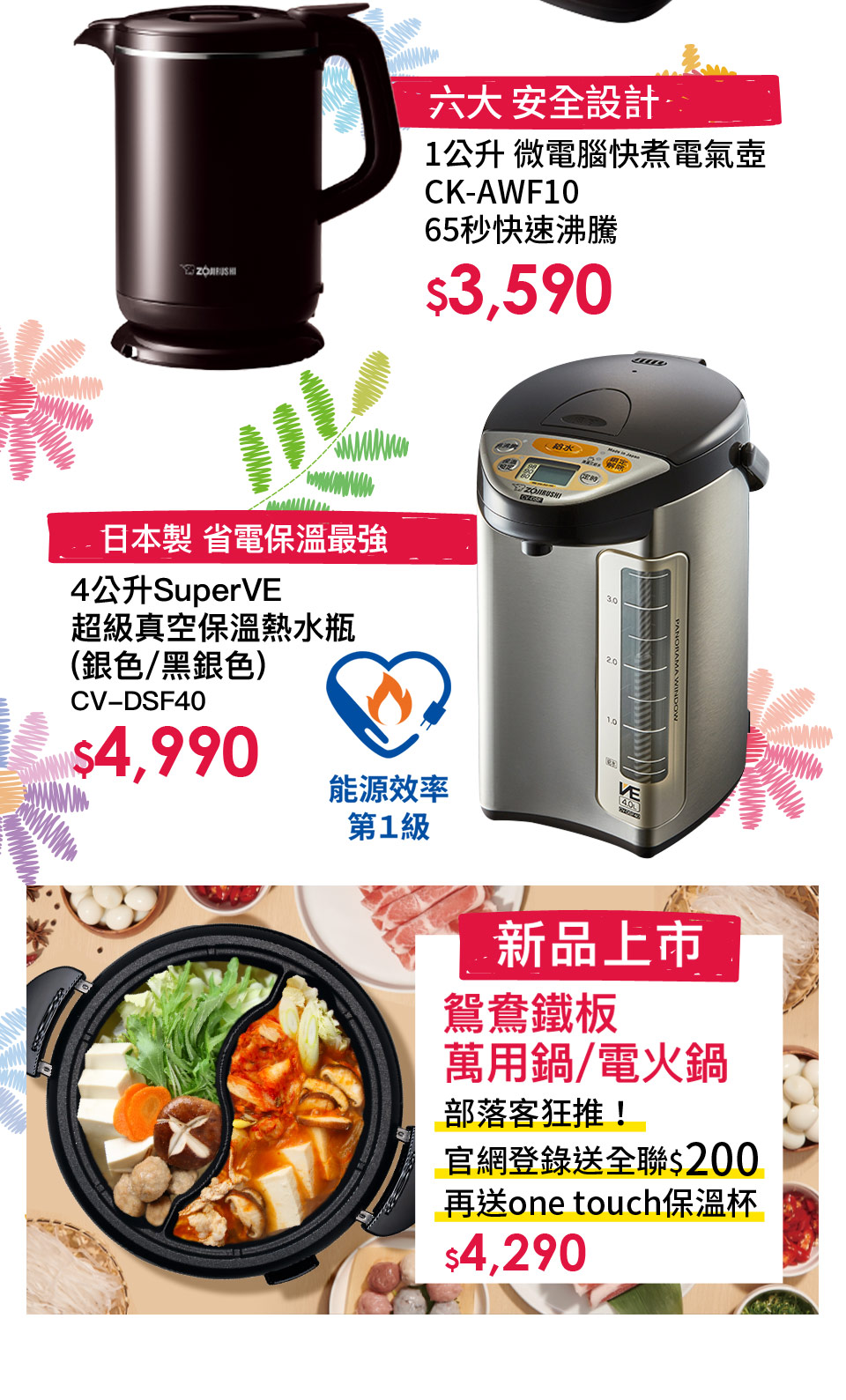 登錄送全聯禮券 象印 鴛鴦鐵板萬用鍋/電火鍋EP-PVF20(買就送)