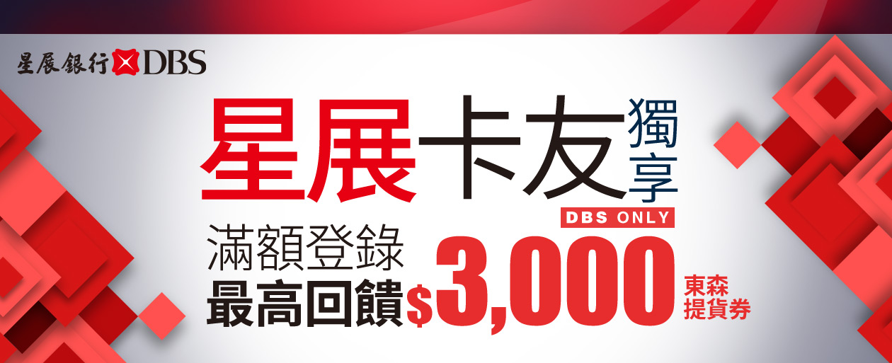 單筆分期達NT$30,000且分12期以上,送東森提貨券2600元(限量50名)