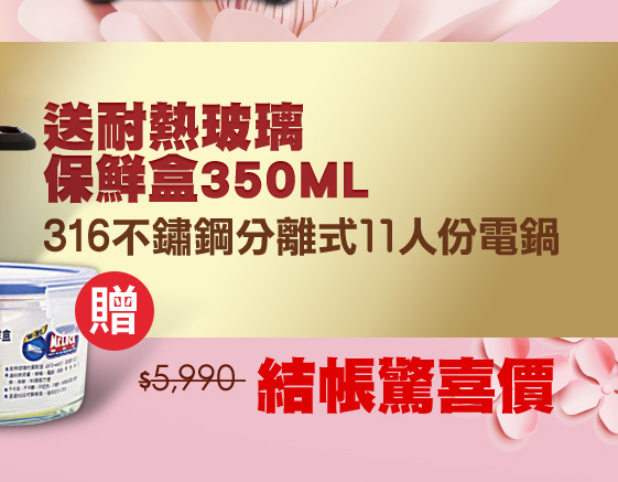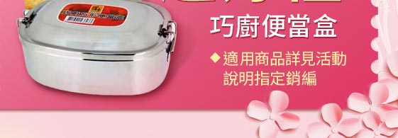 單筆消費滿$1888,即送《鍋寶》不鏽鋼便當盒,贈品恕不累送,送完為止。活動參與品號 : 請見贈獎注意事項。