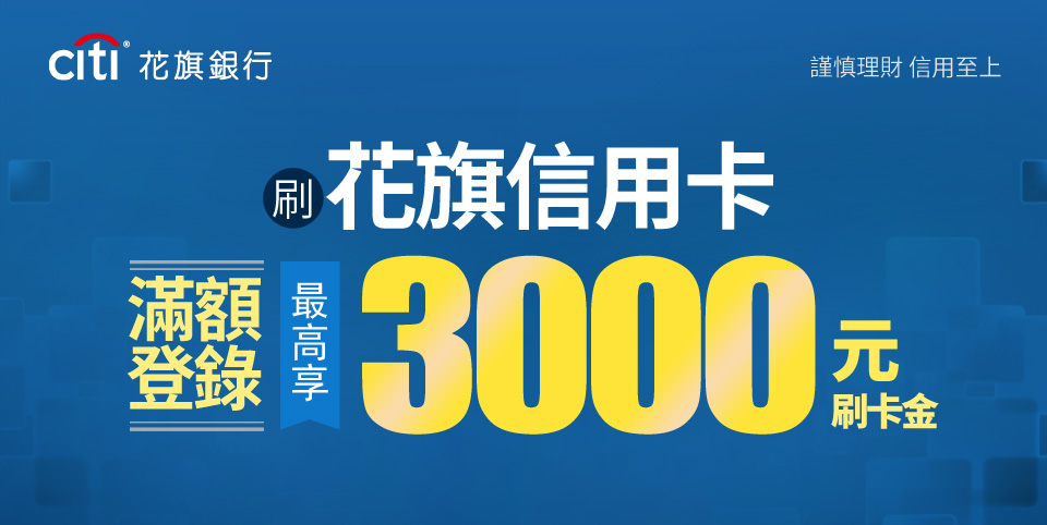 - 每會員帳號每活動限登錄乙次,且需持本人之花旗信用卡進行消費始享回饋。若以他人之花旗信用卡消費,花旗(台灣)銀行保有取消回饋之權利。