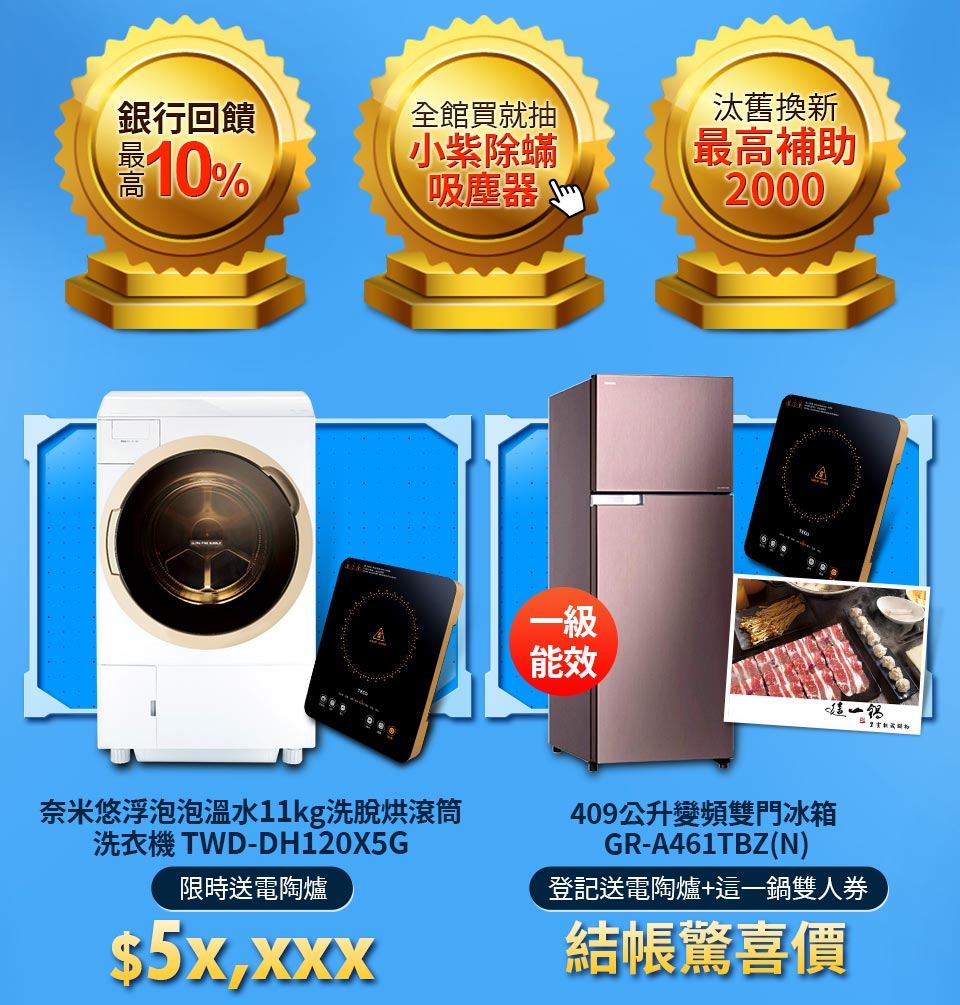 【TOSHIBA東芝洗衣機&冰箱滿18,888登記送東元電陶爐】