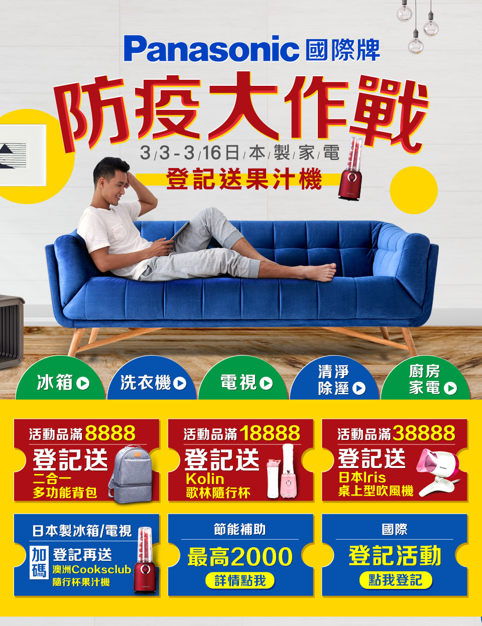 【國際牌指定品滿8,888登記送二合一多功能背包】