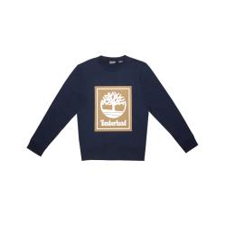 Timberland男款藍色LOGO內刷毛圓領長T恤A1O9H433
