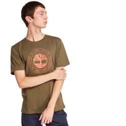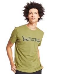 Timberland 男款軍綠色品牌印花短袖圓領T恤A2B8HA58