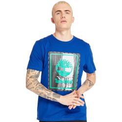 Timberland 男款藍色品牌印花短袖圓領T恤A234Y454