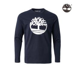 Timberland 男款深寶石藍品牌LOGO長袖圓領T恤A2B7W433