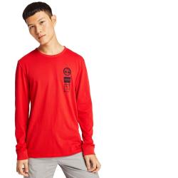 Timberland 男款紅色品牌LOGO長袖圓領T恤A2B8UP92