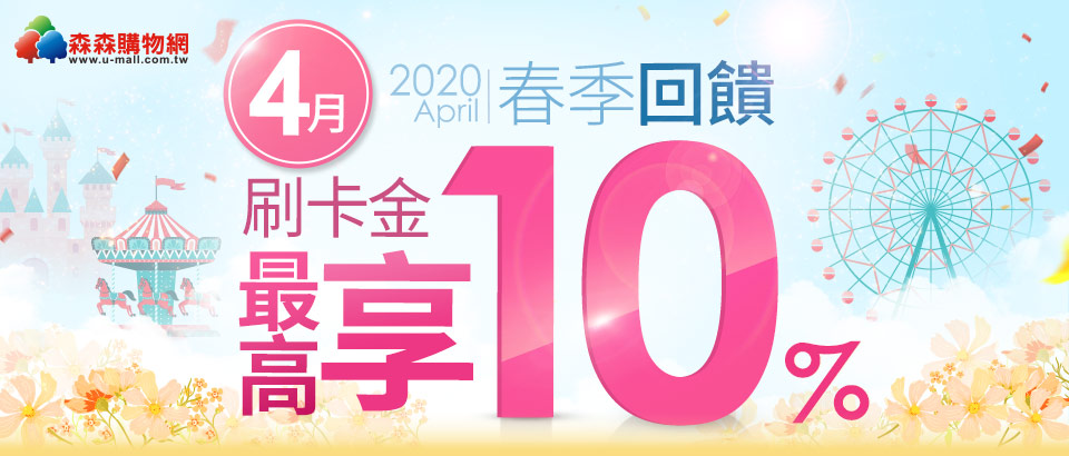 - 本活動限2020/4/1~2020/4/30於東森&森森購物全通路之新增消費適用,活動期間正、附卡合計每月最高回饋200元刷卡金,並於2020/7/20起陸續將刷卡金回饋至正卡持卡人信用卡帳戶。回饋時須為有效卡,如有停卡、延滯繳款或其他違反信用卡契約之情事者,本行得取消其回饋資格。回饋之刷卡金僅限抵扣信用卡消費帳款,恕不得要求折現或以溢繳款方式領回。