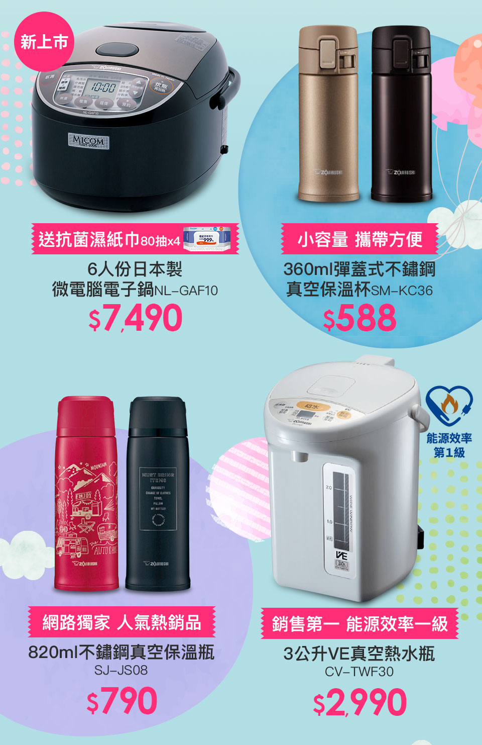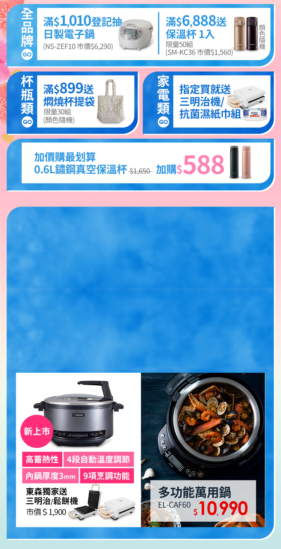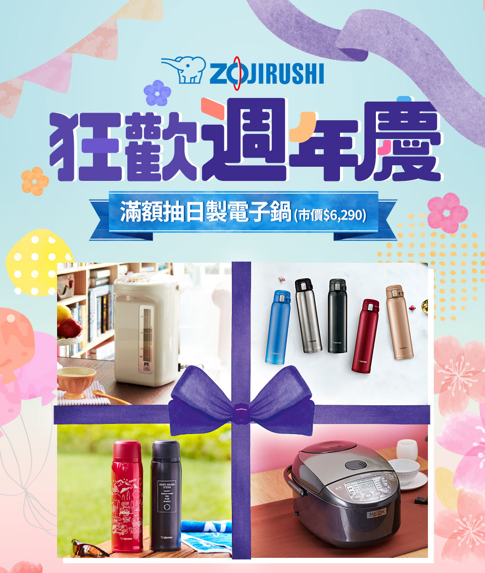 | 6人份微電腦電子鍋(NS-ZEF10) | 活動期間凡購買zojirushi象印全品牌之指定商品,於表單登記即可獲抽獎機會乙次 | 統一於12/18寄送 | 贈品限量1台送完為止 |