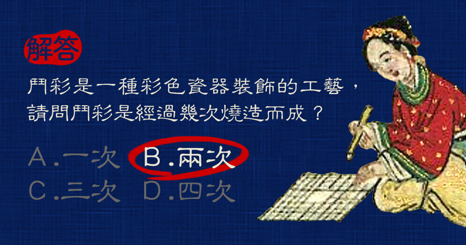 解說: 鬥彩(英語:contrasting colours、joined colours、doucai)又稱「豆彩」「逗彩」「填彩」,是將釉下青花和釉上彩相結合的一種彩色瓷器裝飾工藝,也用來指代施用這種工藝的瓷器。製作時要先燒成勾畫輪廓的青花,然後再填充彩色並以低溫二次燒成。